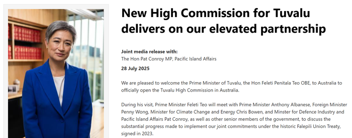 图瓦卢总理泰奥自7月25日至31日正在澳大利亚访问,计划为图瓦卢驻澳大利亚高级专员公署正式揭幕。