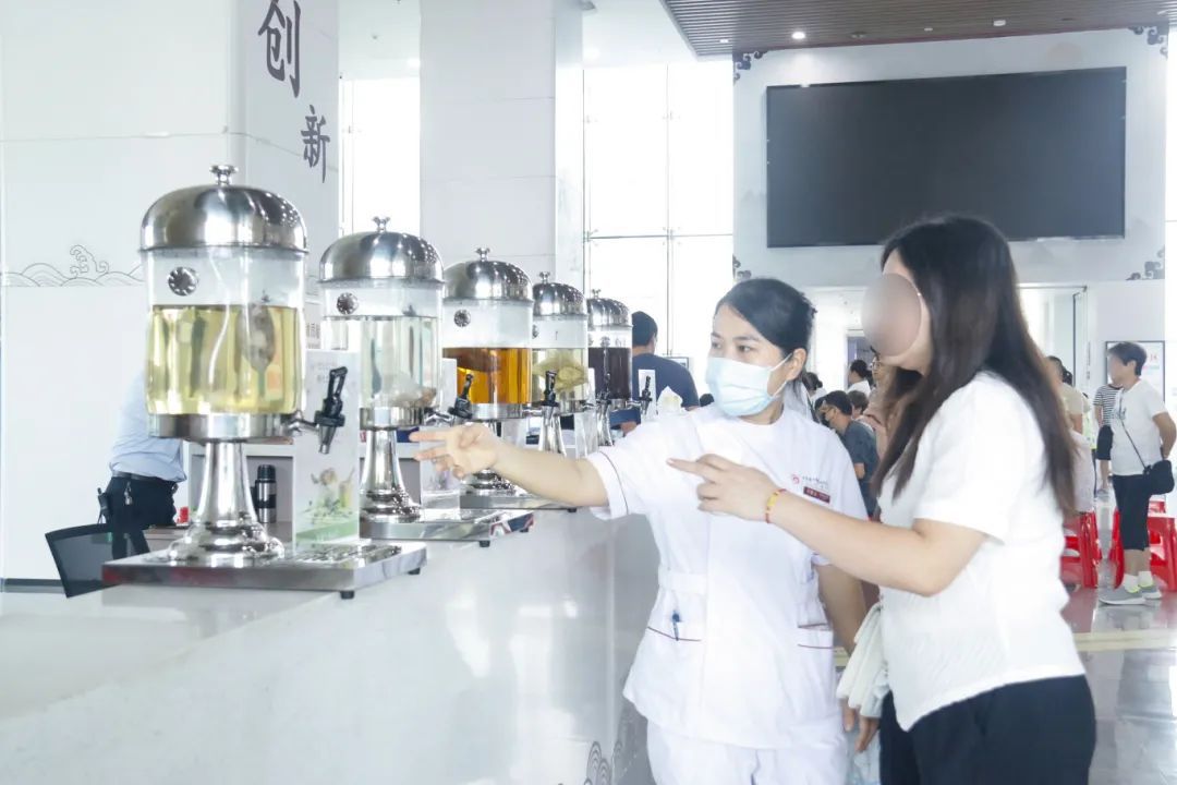 深受患者信赖的广东省中医院院内制剂也在活动现场集中展示,吸引了众多市民驻足。专业药师耐心讲解其功效与用法,让市民近距离了解这些中医药“特色瑰宝”的魅力。市民们还兴致勃勃地品尝精心调配的中医养生茶饮,拍照记录,中医药文化更加贴近日常生活。