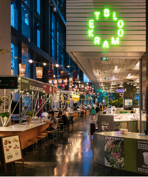 与此同时,西岸梦中心积极推动各类主题与滨水场景和特色工业建筑的深度融合,通过对特色建筑的空间再造,实现历史与当代的共生。BLOOMARKET充分活化梦工场开阔通透的空间特质,打造上海首个开放式滨水市集,吸引了30余家特色餐饮品牌入驻,从云南创意菜“胡麻”到东南亚创意融合餐厅“CUCURUCU”,构建了丰富的世界风味图谱,还通过市集、工作坊等活动持续探索城市公共生活的可能性,逐渐从一个新兴空间成长为充满活力的生活游乐场;乐高世界玩乐节打造出融合创意建构与亲子互动的沉浸式体验现场。而南区大筒仓凭借独特的空间结构和绝佳的观景视角也成为打卡胜地,比如,SKULLPANDA现象级潮流艺术展和攀岩空间在此呈现,沪上老牌西班牙餐厅布朗石西班牙餐厅特别增设特色烧烤的360度江景餐厅都已开放,将工业建筑遗存打造成兼具活力与江岸风情的地标。