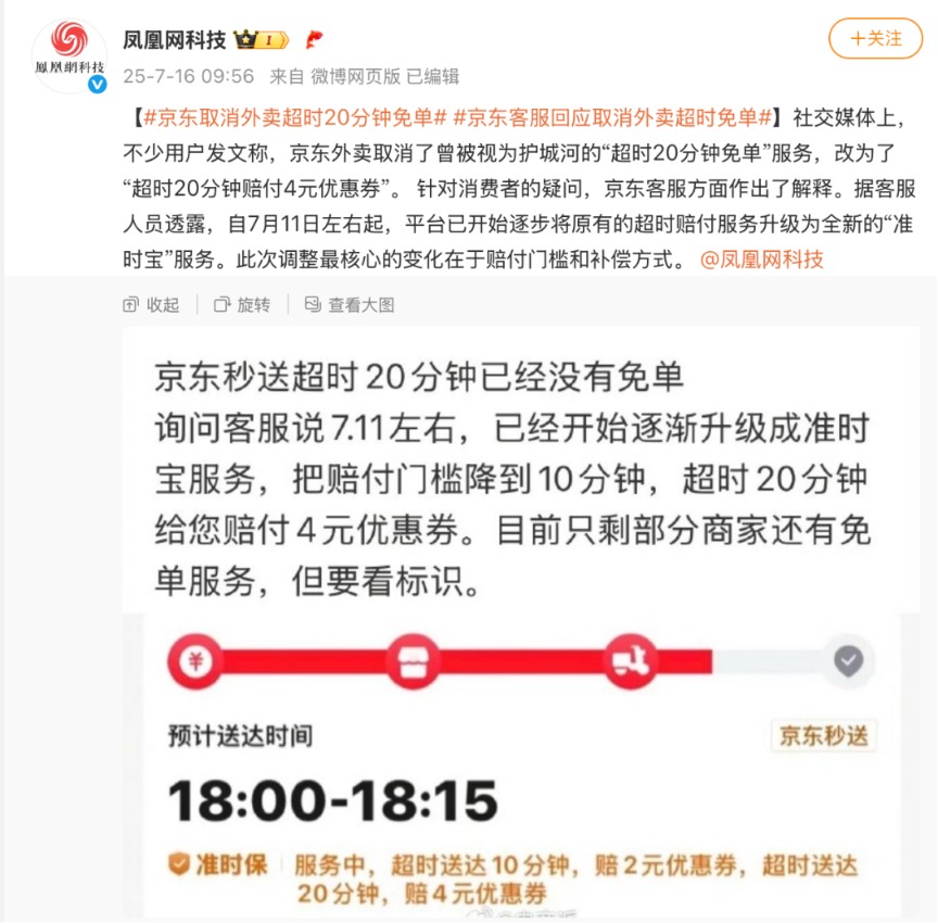 据凤凰网科技微博消息,社交媒体上米牛金融,不少用户发文称,京东外卖取消了曾被视为护城河的“超时20分钟免单”服务,改为了“超时20分钟赔付4元优惠券”。